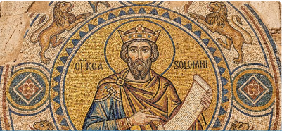 Salomone, figlio del re Davide e di Betsabea, divenne il terzo re di Israele e governò durante quella che spesso viene chiamata l'età d'oro della nazione. Sebbene non fosse il figlio maggiore di Davide, Salomone fu divinamente nominato per succedere a lui. Il suo regno iniziò con abilità politica e umiltà. All'inizio della sua regalità, Dio apparve a Salomone in sogno e gli offrì tutto ciò che desiderava. Piuttosto che chiedere ricchezza o potere, Salomone chiese famosamente la saggezza per governare correttamente il popolo. Questo piacque a Dio, che non solo gli diede una saggezza incomparabile, ma gli aggiunse anche grandi ricchezze, onore e pace, durante il suo regno.